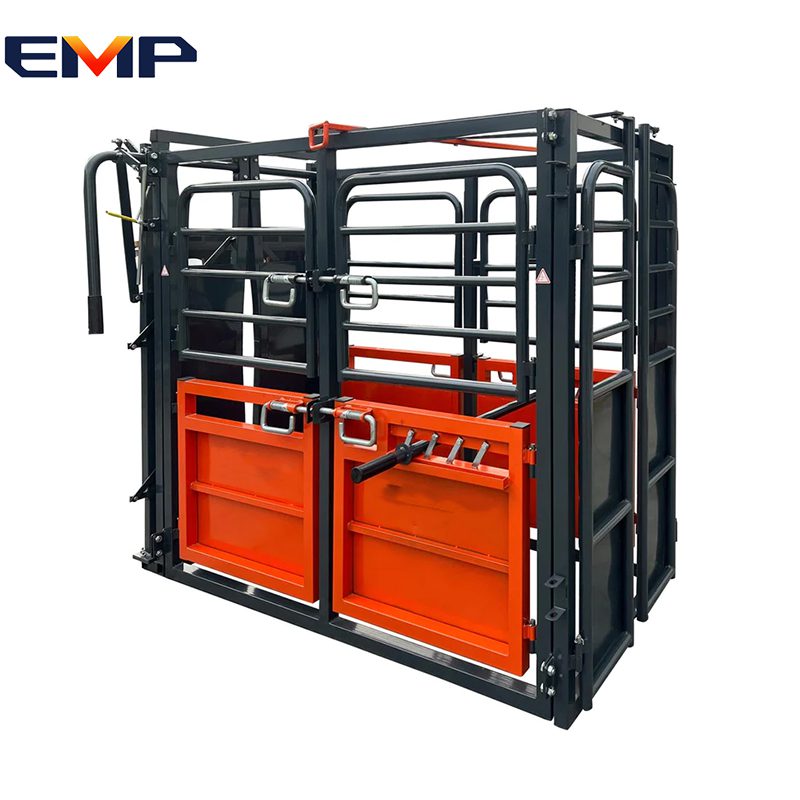 Application: | EMP’s Cattle Squeeze Chute Manual Headgate is a fast and economical solution for working cattle. The manual headgate is designed to catch all size cattle without any mechanical adjustments. This chute features an easy-pull tailgate and squeeze mechanism to apply pressure safely to keep cattle still while you work. The hinged top access panels and removable kick pan allow quick and easy access for branding, vaccinating, and deworming. The hinged side panel opens, providing an additional exit. |